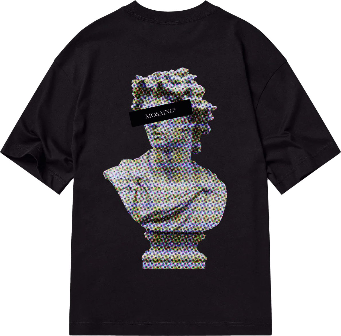 Από τη σειρά Censored Classics της MOSAINC®, το David on my back Tee σχολιάζει την αισθητική της απαγόρευσης μέσα από μια διαχρονική μορφή — την προτομή του Δαβίδ, καλυμμένη με το logo μας.